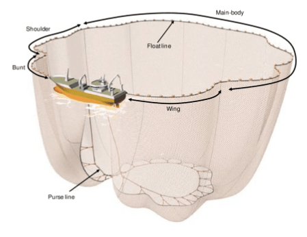 Figura 5 – Operação das traineiras para formar o cerco com as redes (Adaptado de Galbraith et al., 2004).