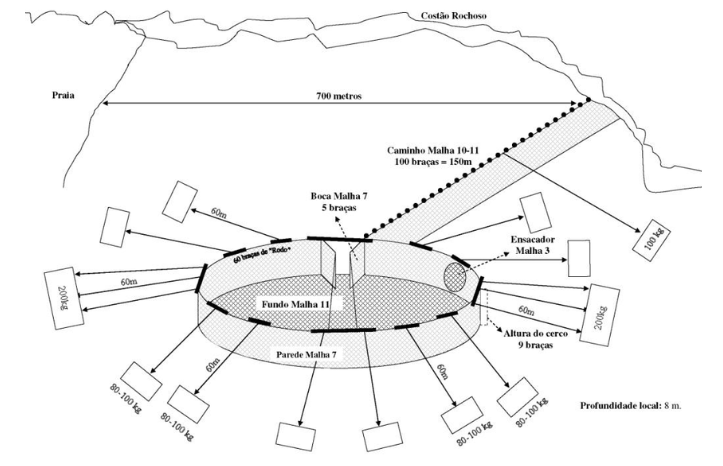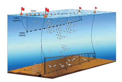 Figura 6- Exemplo de cerco fixo flutuante (Adaptado de Cruvinel & Vaz-dos-Santos, 2013).