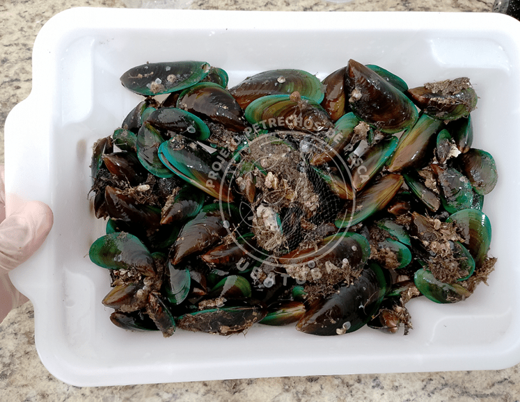 Indivíduos de P. viridis coletados na Baía de Ubatuba pelo Projeto Petrechos de Pesca em fevereiro de 2025.